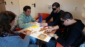 For the listening section, we have recorded some sounds and real noise situations and they had to understand what it was; but there are also memory and braille workshops, or simply board games suitable for visually impaired or some blind sport such as goal ball.